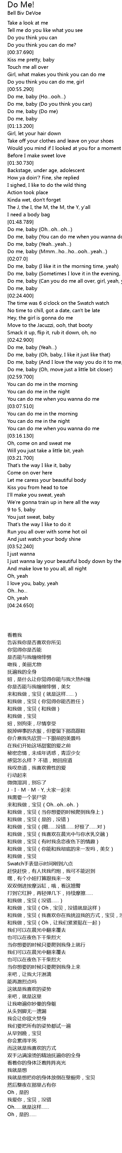 Kiss me pretty baby Touch me. Do me baby I like it in the morning time yeah Do me baby sometimes I love it in the evening baby yeah Do me baby can you do me all over girl yeah yeah Do me baby. Do you think you can do me.